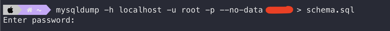 --no-data 옵션이 DDL만 뽑기위한 옵션이고, 파일을 생성하고 싶은 위치에서 아래 명령어를 실행하면 된다.