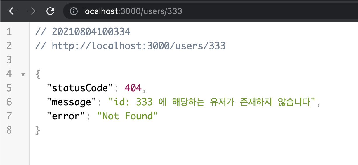 이렇게 존재하지 않는 id로 조회를 할 경우, NotFoundException이 발생한다.