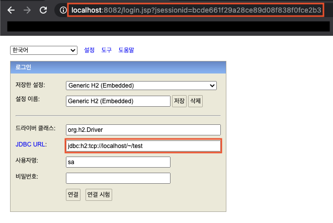 $ h2아래처럼 콘솔이 뜨면 잘 실행된 것이에요.. sessionid는 지우면 안됩니다!