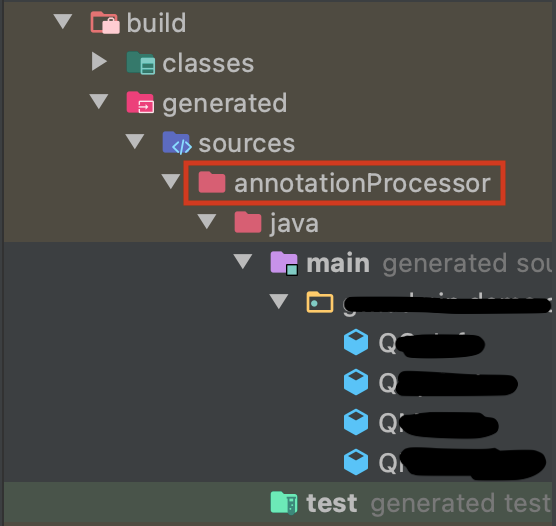 build/generated/sources/annotationProcessor/java/main경로에 생성된다.
