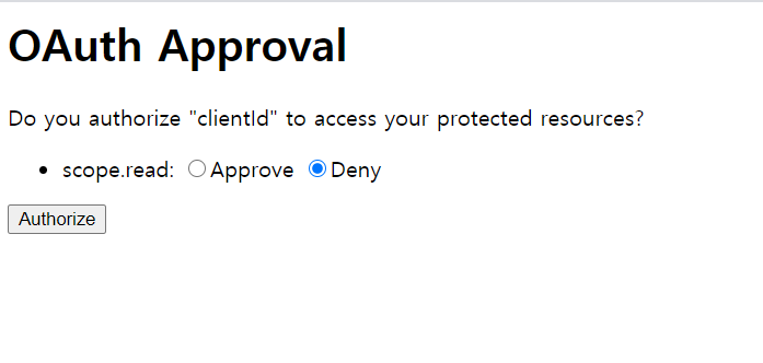 scope.read: Approve 선택 후 Authorize 버튼 클릭