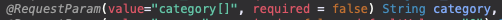 이런식으로 RequestParam의 value값에 []를 넣어 배열로 받았는데, 이게 localhost에서는 문제없이 돌아갔었음..